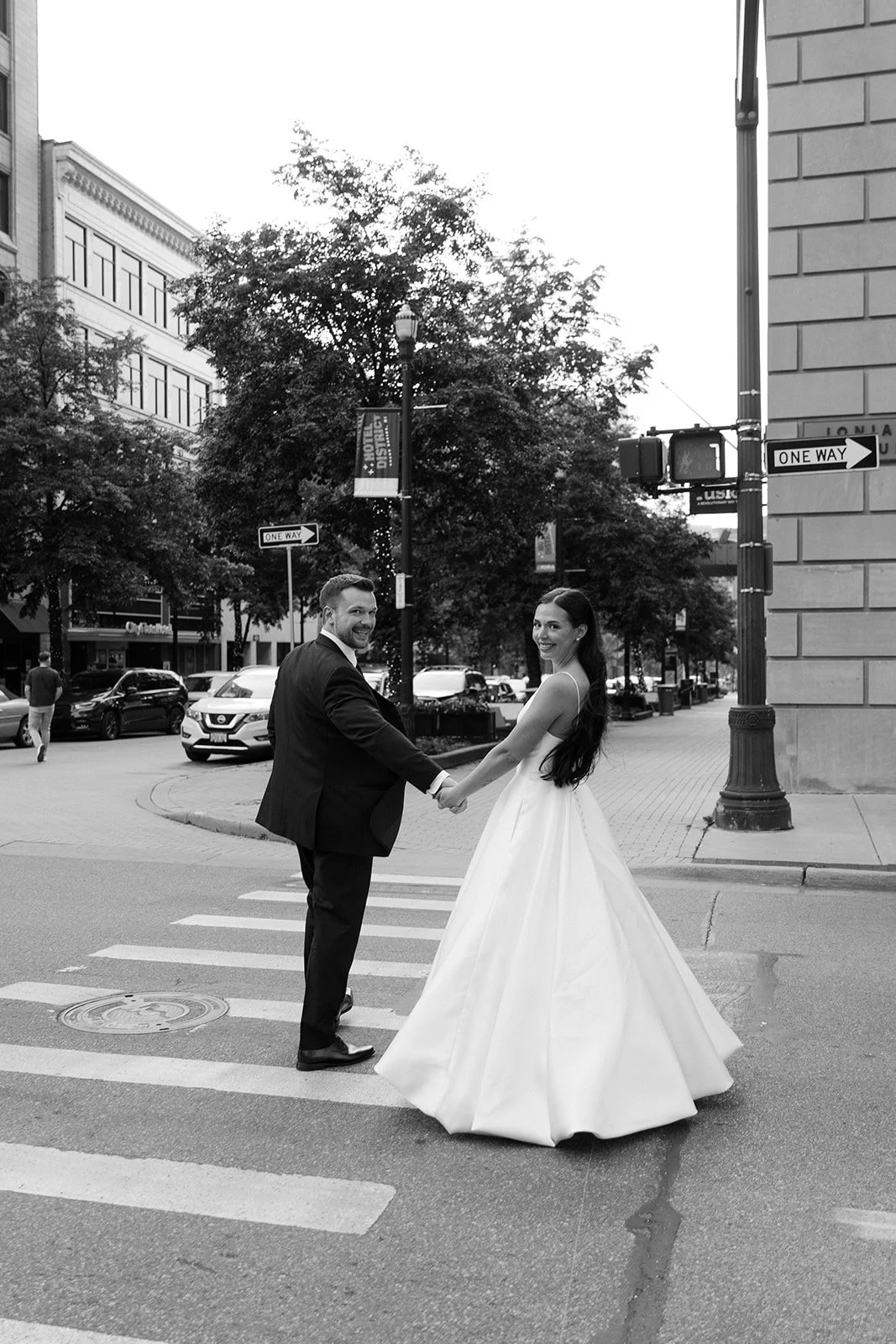 Some weddings are simply unforgettable—where timeless elegance, joyful energy, and heartfelt connection all align. Sydney and Nathan’s May wedding at the CityFlats Ballroom in downtown Grand Rapids was exactly that. From the very beginning, their vision was clear: refined, effortless beauty wrapped in the warmth of celebration with the people they love most. And it all came to life on a spring day filled with laughter, love, and a bit of downtown charm.